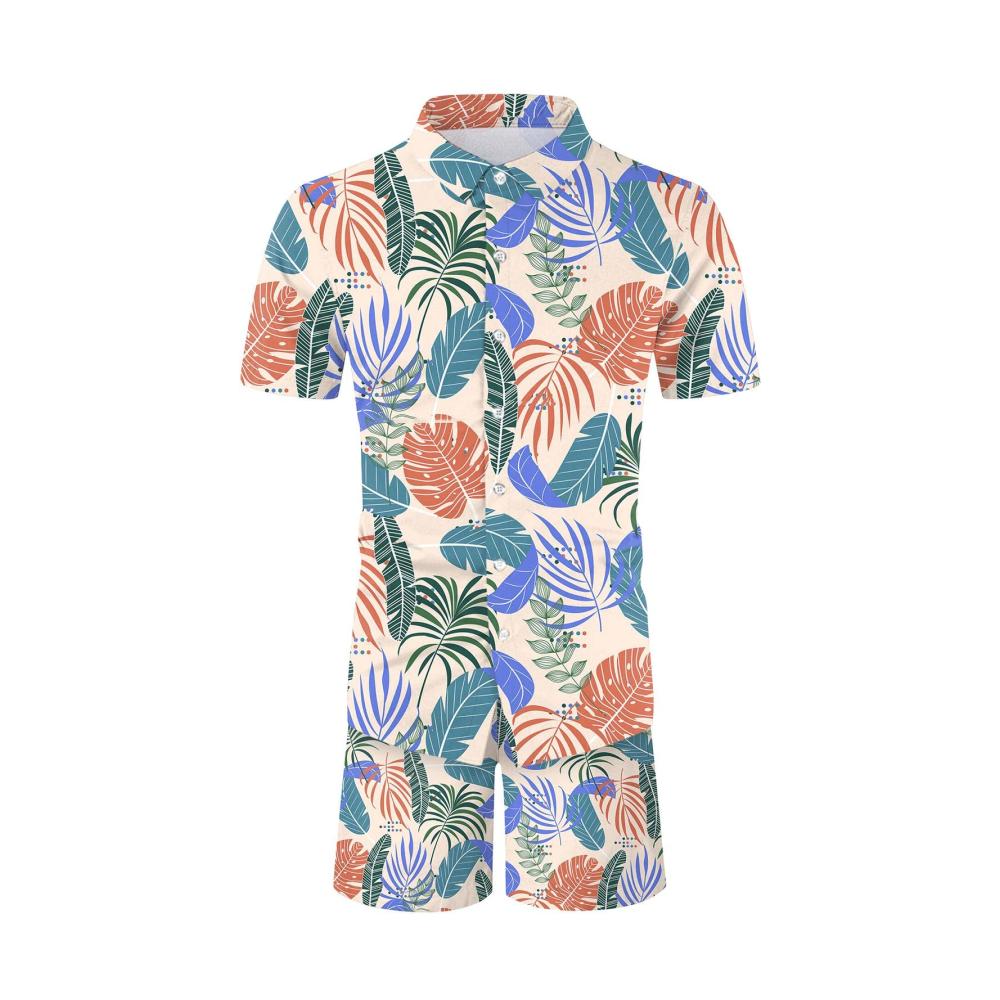 Ein trendiges Set aus Trainingsanzug für Herren mit einem Hawaii-Hemd und passenden Shorts. Diese 2-teilige Casual Sportbekleidung ist perfekt für den Sommer geeignet. Das Hawaii-Print Kurzarmshirt verleiht ein klassisches Druckmuster, während die Männer Shorts den Look komplettieren. Genießen Sie Komfort und Stil mit diesem modischen Hawaii Hemd und Shorts Set.