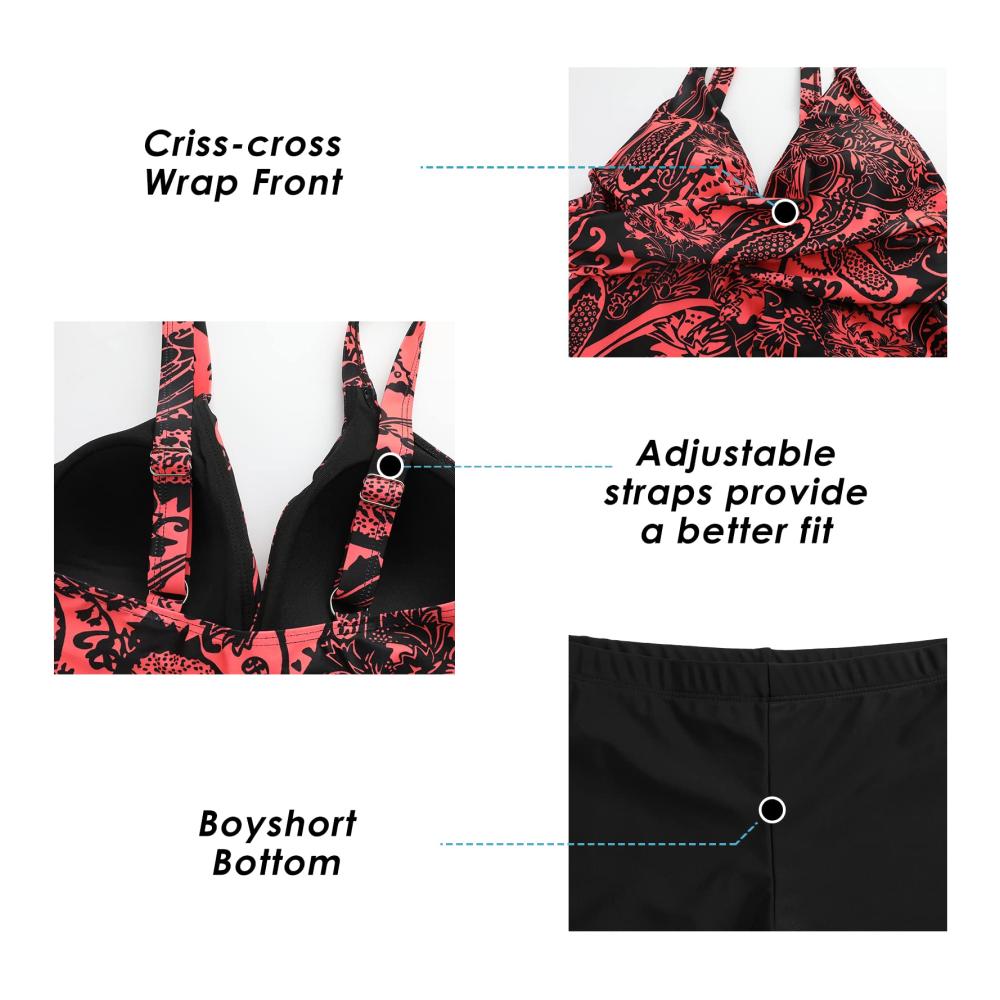 Sets Adigaber Damen zweiteilig Badeanzug Push up Bademoden bauchweg Tankini Set mit Hot Pants Drucken Badeanzug Bikini Sportlich