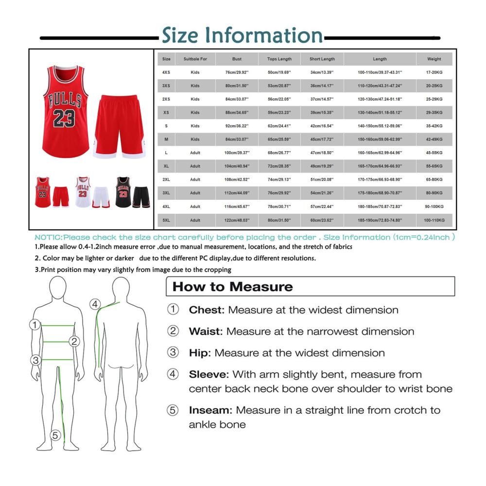 ???【Größentabelle】Basketball Kinder/Erwachsener Trikot 2 Stücke Bitte beachten Sie unsere Größentabelle, um die richtige Größe für Sie zu finden.Erwachsener Erhältlich in den Größen L bis 5XL Der Basketball Trikot Kinder ist in den Größen S-4XS erhältlich. Mit einem strapazierfähigen elastischen Bund um Shorts, der sie für alle Körpergrößen dehnbar macht.