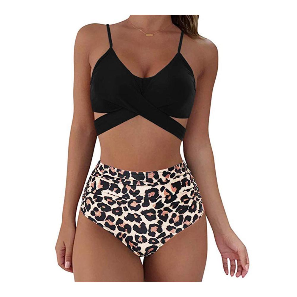 3-teiliges bedrucktes Wickel-Bikini-Set für Damen mit Maxi Pareos Strandkleider, Push-Up-Badeanzügen mit hoher Taille Bikini Damen Set Damen Badeanzug Rüschen Zweiteilige High Waist Bikini Retro Sätze mit hoher Taille Bademode Strandkleidung Damen Tankini Badeanzug Bikini Damen Set Sportlich Bikini Damen Set Sexy Damen Push Up Bikini Set Sexy Bikini Zweiteiliger Badeanzug Bademode Strand Bikinis Strandkleidung Bikinioberteil S-X Damen Cross Back Badeanzüge Leopard Twist