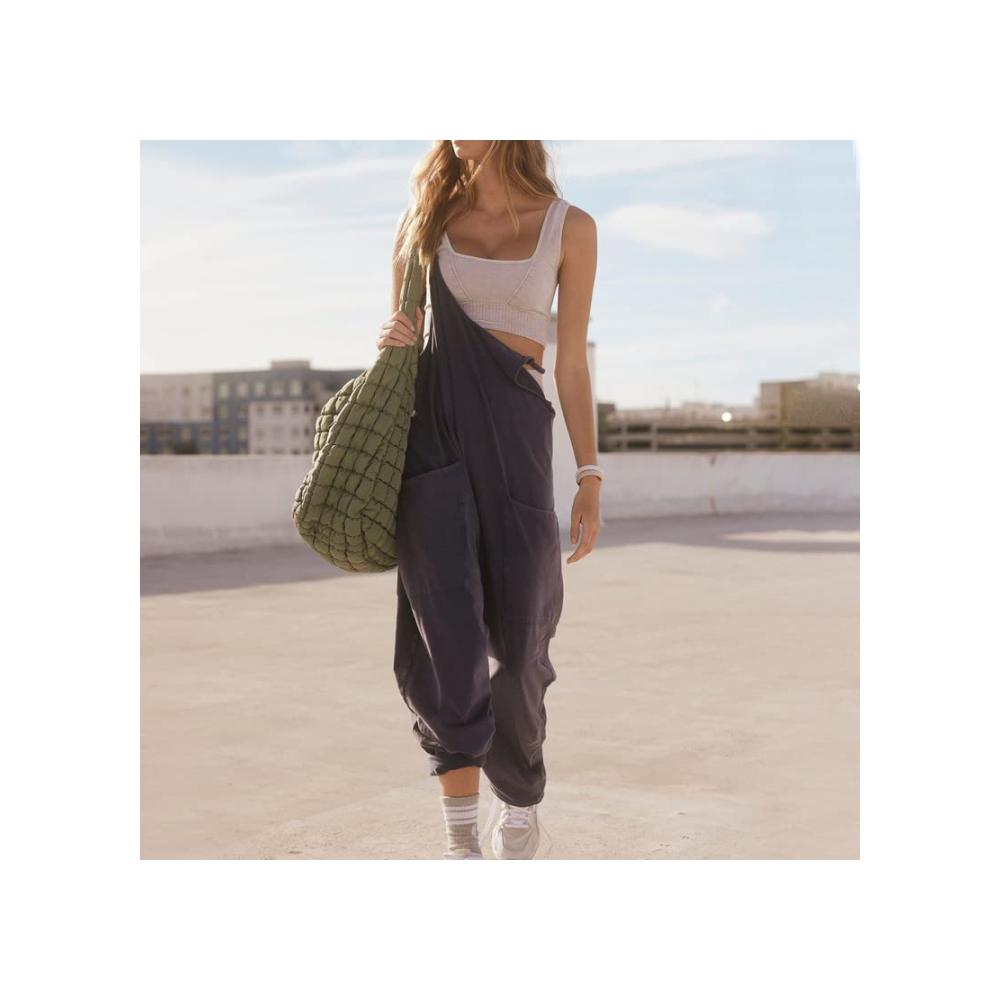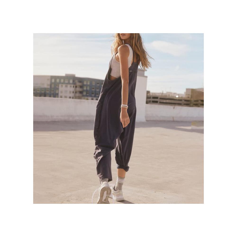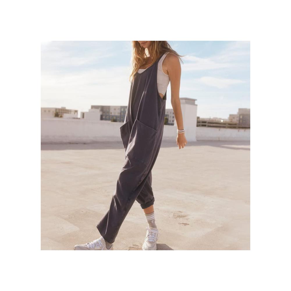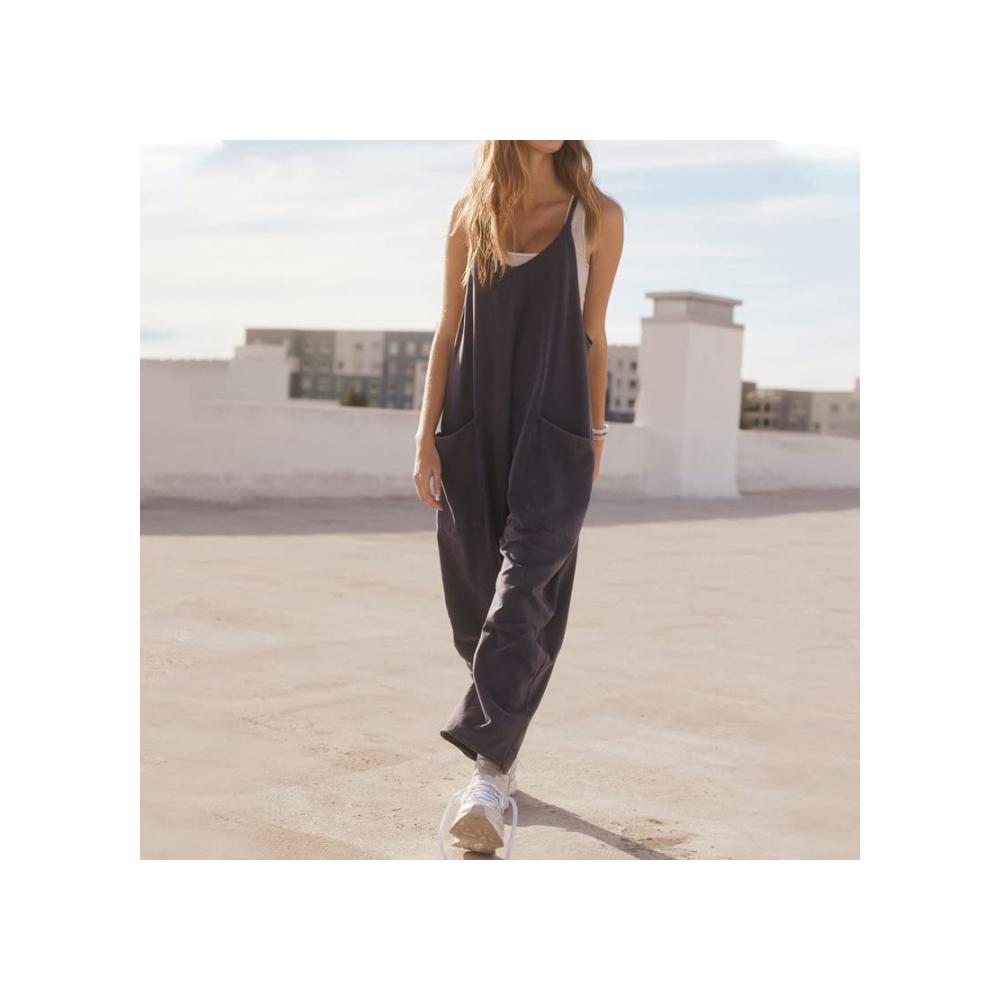 Der übergroße, lockere Schnitt verleiht diesem Overall eine lässige Eleganz, während der Reißverschluss eine mühelose Anpassung ermöglicht. Die dünne Trägerkonstruktion verleiht dem Jumpsuit eine subtile Raffinesse, während die großen Taschen nicht nur praktisch sind, sondern auch ein stylisches Element hinzufügen.