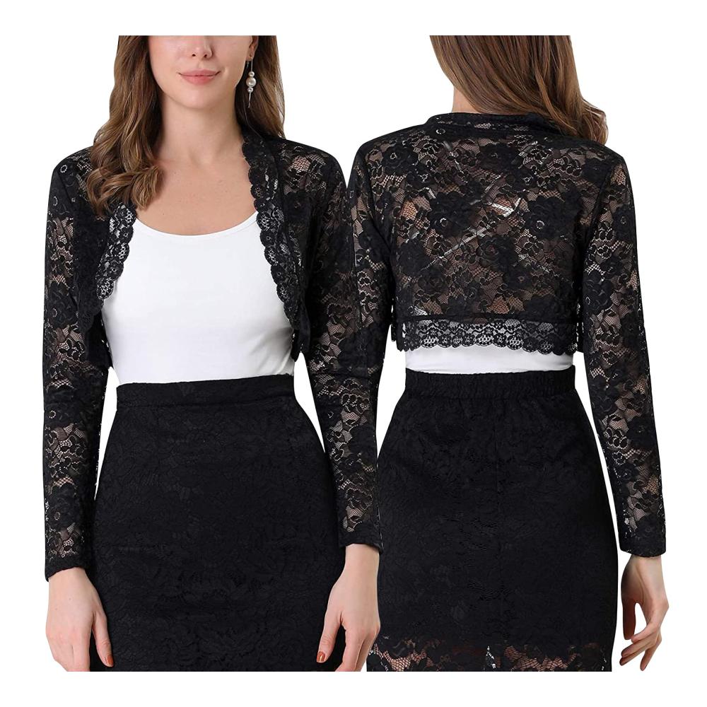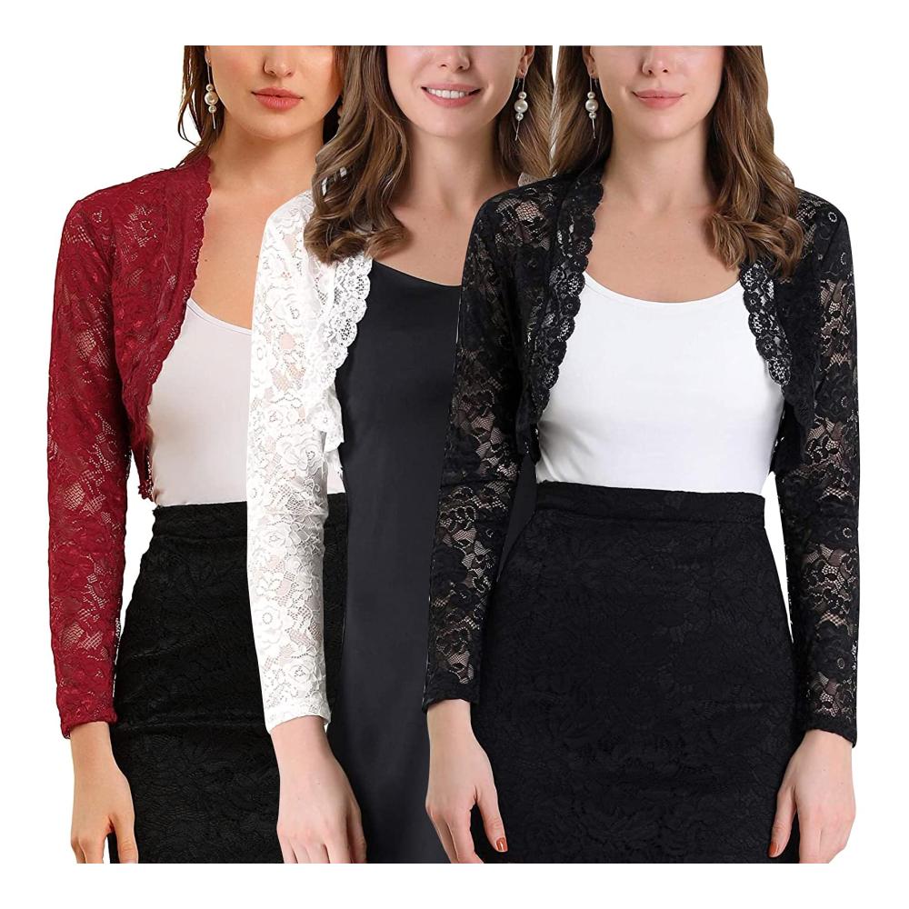 Entdecken Sie unseren eleganten Damen-Bolero aus hochwertiger Spitze. Dieser langärmlige Bolero ist die perfekte Ergänzung für Ihr Outfit, sei es für besondere Anlässe oder den täglichen Stil. Die offene Weste sorgt für eine luftige Leichtigkeit, während das einfarbige Design Vielseitigkeit bietet.