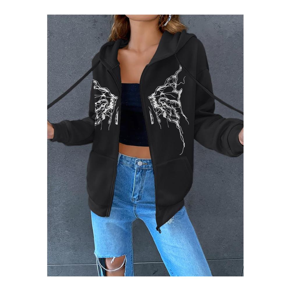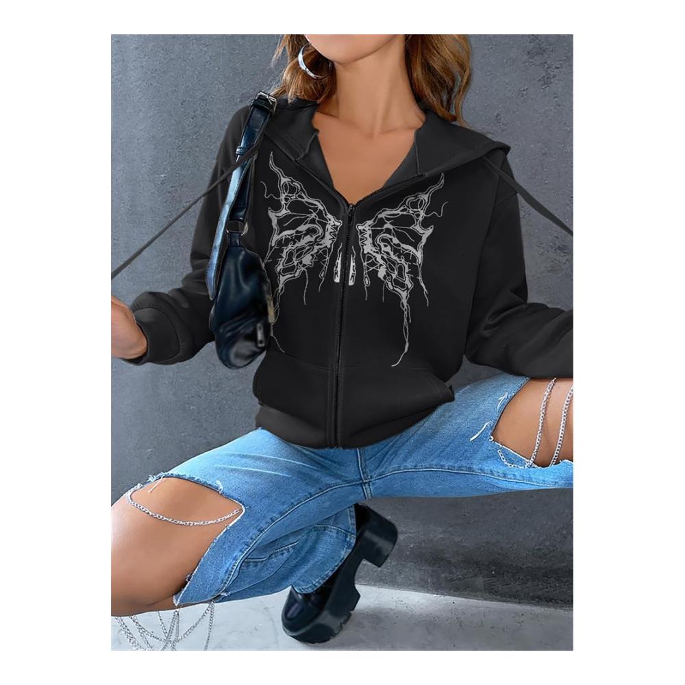 Design: Kapuzenpullover Damen Oversize Vintage Hoodie mit Reißverschluss, Y2K E-Girl Streetwear, übergroße Jacken mit Schmetterling Muster. Lockere Regular Passform geeignet für jedes Alter.