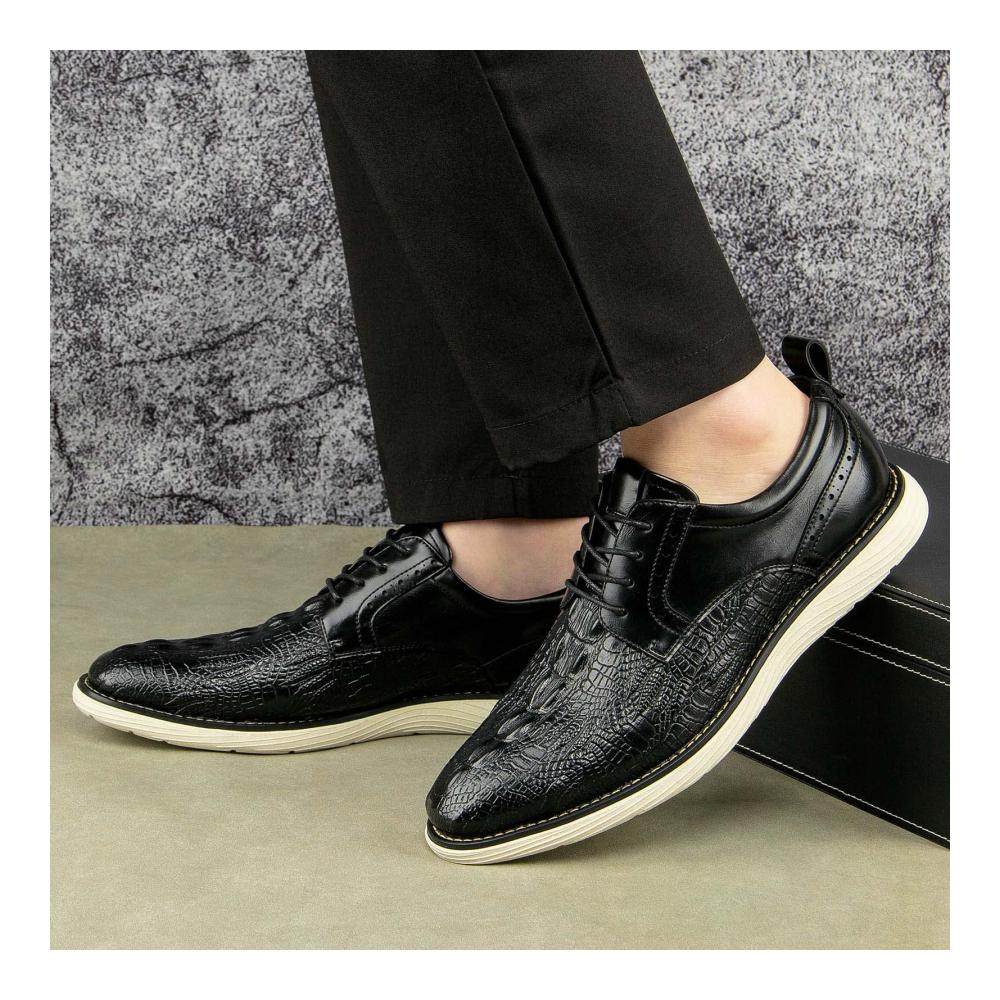 Diese stilvollen Schnürhalbschuhe im Oxford-Stil sind die perfekte Ergänzung für den Kleiderschrank jedes Mannes. Hergestellt aus hochwertigem Leder, bieten sie eine langlebige und bequeme Passform. Die klassische Oxford-Silhouette und die Lochmusterungen verleihen ihnen einen eleganten Look, der sich perfekt für formelle Anlässe eignet.