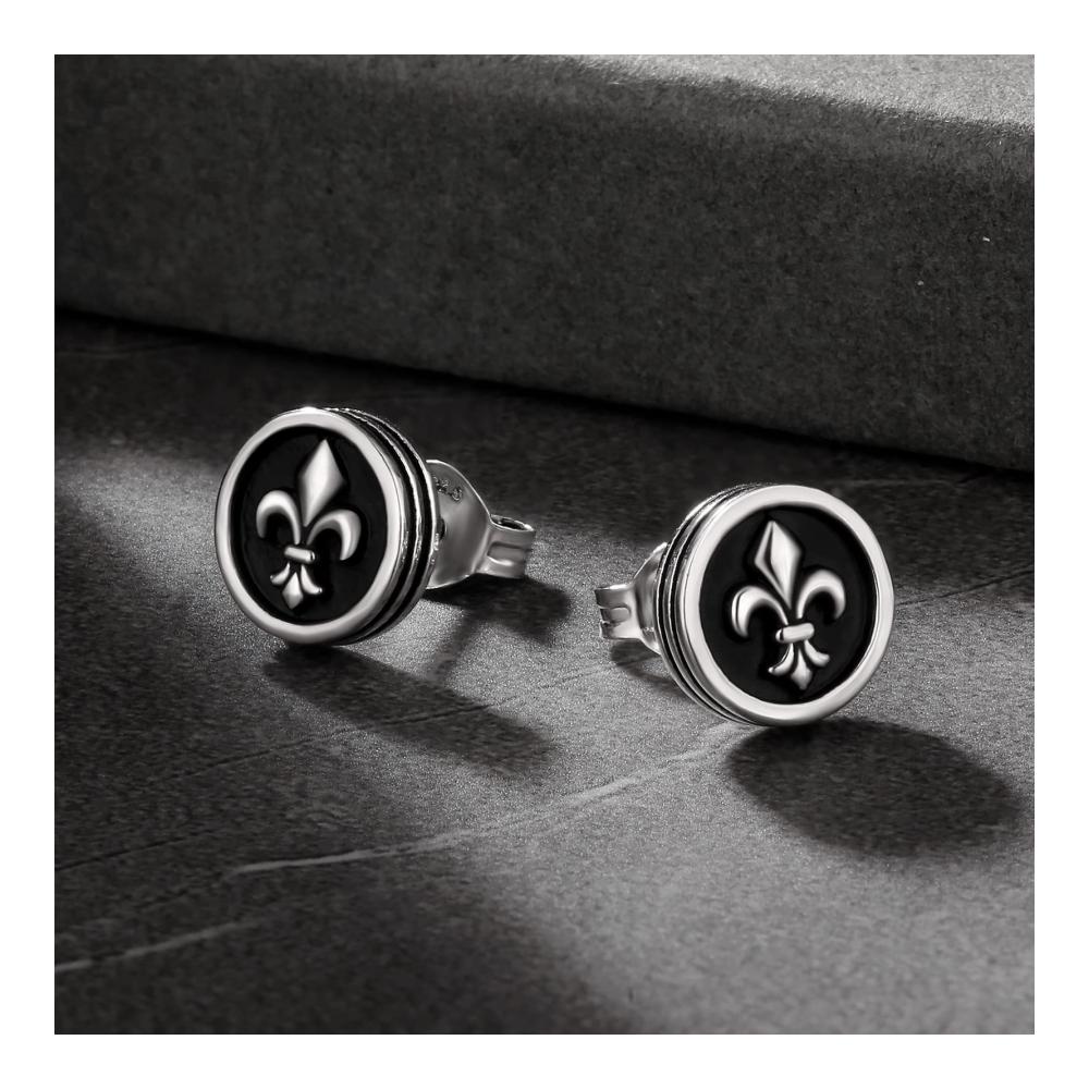Fleur De Lis SILBER SCHWARZE OHRSTECKER