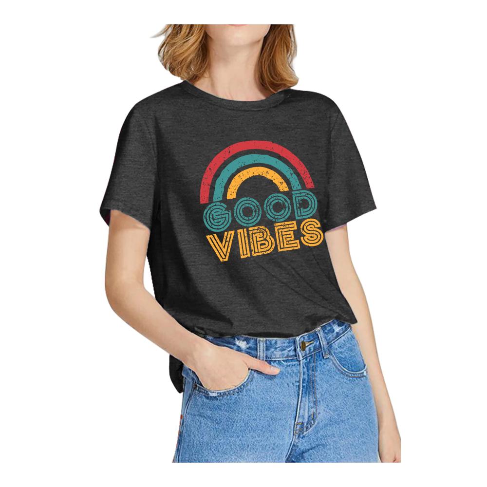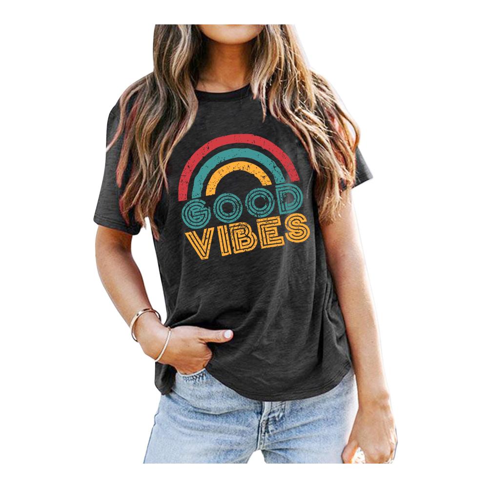 T Shirt Damen Kurzarm Good Vibes Shirts Regenbogen Grafik Kurzarm Shirt Sommer Lässig Tops Package Include:1*Damen Shirt Pattern:Brief Regenbogen Druck Material:60% Baumwolle, 40% Polyester Size Chart: (1Inch=2.54cm) Größe S—–Länge 66cm/26.0″—–Brustumfang 96cm/37.8″—–Ärmel 16cm/6.3″ Größe M——Länge 68cm/26.4″—–Brustumfang 100cm/39.4″—–Ärmel 17cm/6.7″ Größe L——-Länge 71cm/27.9″—–Brustumfang 104cm/40.9″—–Ärmel 18cm/7.1″ Größe XL——-Länge 73cm/28.7″—–Brustumfang 110cm/43.3″—–Ärmel 19cm/7.5″ Size XXL——Length 75cm/29.55″—-Bust 116cm/45.70″ —-Sleeve 20cm /7.88″ Bitte erlauben Sie 1-2cm Unterschiede aufgrund der manuellen Messung, danke! Service: Unsere Design-Philosophie lautet: Fast Fashion, unser Ziel ist es, Der markanteste T-Shirt Shop für Frauen, Wir wollen unseren Kunden die neuesten, modischsten und interessantesten T-Shirts anbieten. Wir hoffen, dass jeder wegen dieser einfachen glücklich sein kann. Wenn Sie einige Fragen über das T-Shirt haben, fühlen Sie sich bitte frei, uns per E-Mail zu kontaktieren. wir werden Ihre Nachricht innerhalb von 24 Stunden zu beantworten.