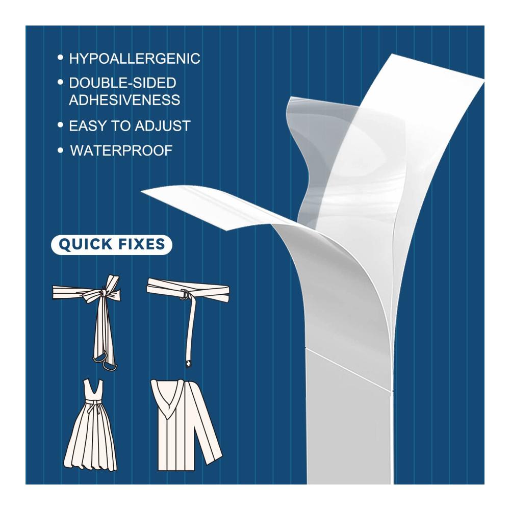 - Amplia Gama De Usos: Adecuado para ropa de escote bajo, vestidos abiertos, huecos entre botones, tirantes de falda, puños y otras posiciones. La cinta de moda es muy fácil de usar. Es una opción ideal para evitar el escote caído y la falda flotante. Se puede usar a diario, pero también es adecuado para fiestas, bodas y otras ocasiones.