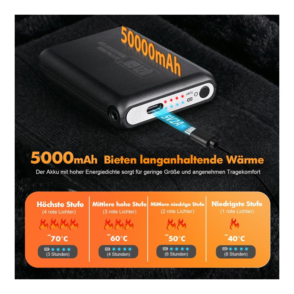 Die beheizten Socken sind mit leistungsstarken 5V 5000mAh wiederaufladbaren Batterien ausgestattet, die für lang anhaltende Wärme sorgen. Einfach aufladbar und leicht zu bedienen, bieten diese Heizsocken ultimativen Komfort und Schutz vor den Elementen.