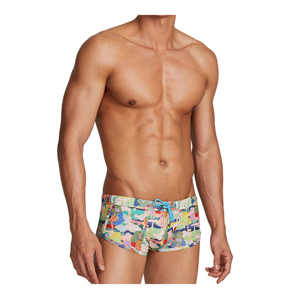 Diese eng anliegende Badeshorts für Herren ist ideal für einen stylischen Auftritt am Strand oder am Pool. Die kurze Badehose im Bikini-Stil ist atmungsaktiv und schnelltrocknend. Dank des Tunnelzugs lässt sie sich individuell anpassen und sorgt für einen angenehmen Tragekomfort. Das bunte Druckmuster verleiht der Badeslip ein trendiges Aussehen. Mit dieser Stretch-Bademode sind Sie bereit für Strand, Pool und Surfabenteuer.