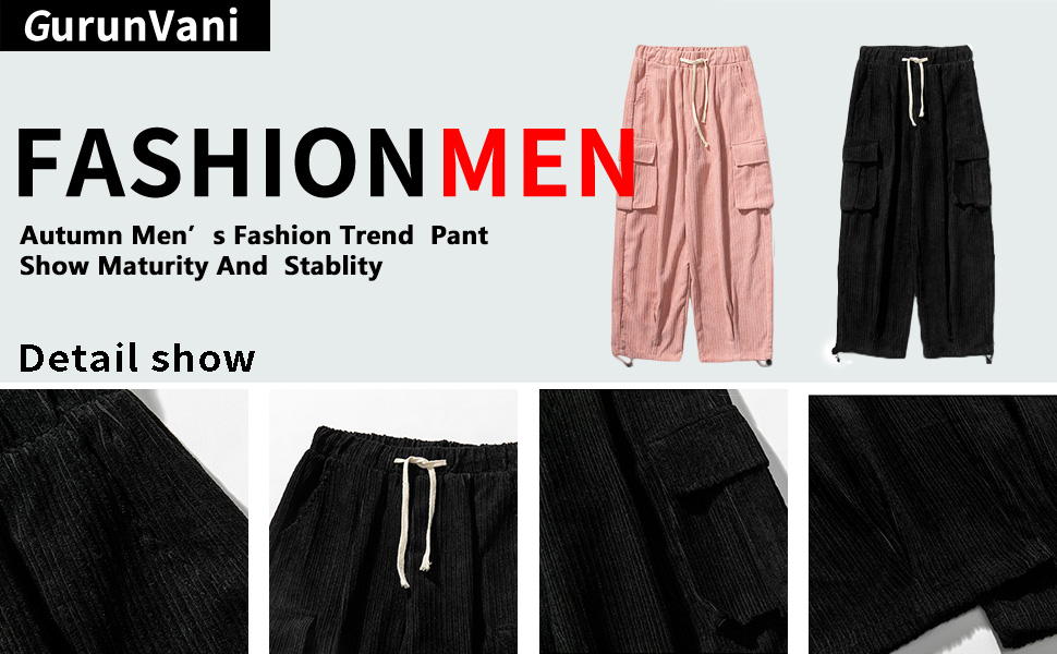 Hosen Herren Cordhose gerade Hose elastischer Bund Kordelzug Vintage-Jogginghose