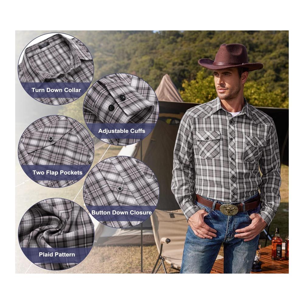 Das Freizeithemd für Herren im Cowboy-Stil ist ein Must-Have für alle Männer, die den Western-Charme lieben. Dieses karierte Langarmhemd im klassischen Karohemd-Design verleiht jedem Outfit einen robusten und maskulinen Touch. Perfekt für den lässigen Look in der Freizeit oder als Statement-Style für besondere Anlässe. Tragen Sie dieses Western-Karohemd und zeigen Sie Ihren einzigartigen Stil