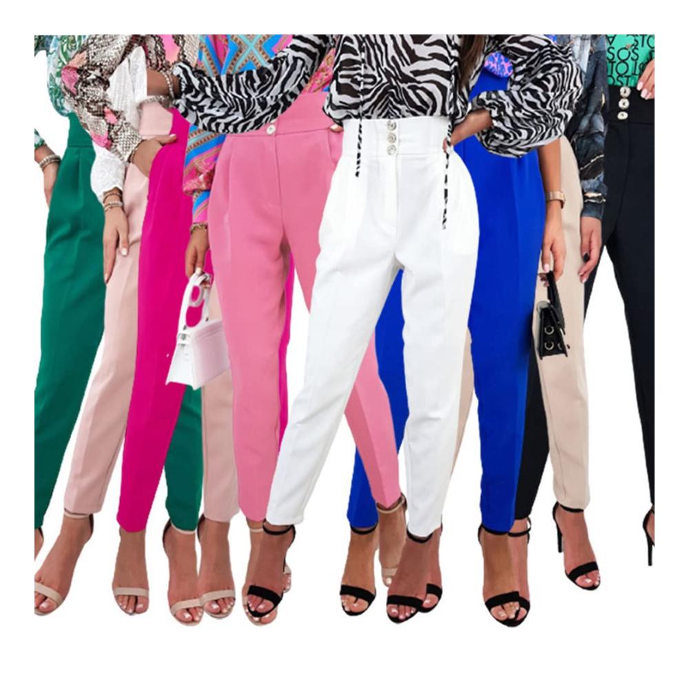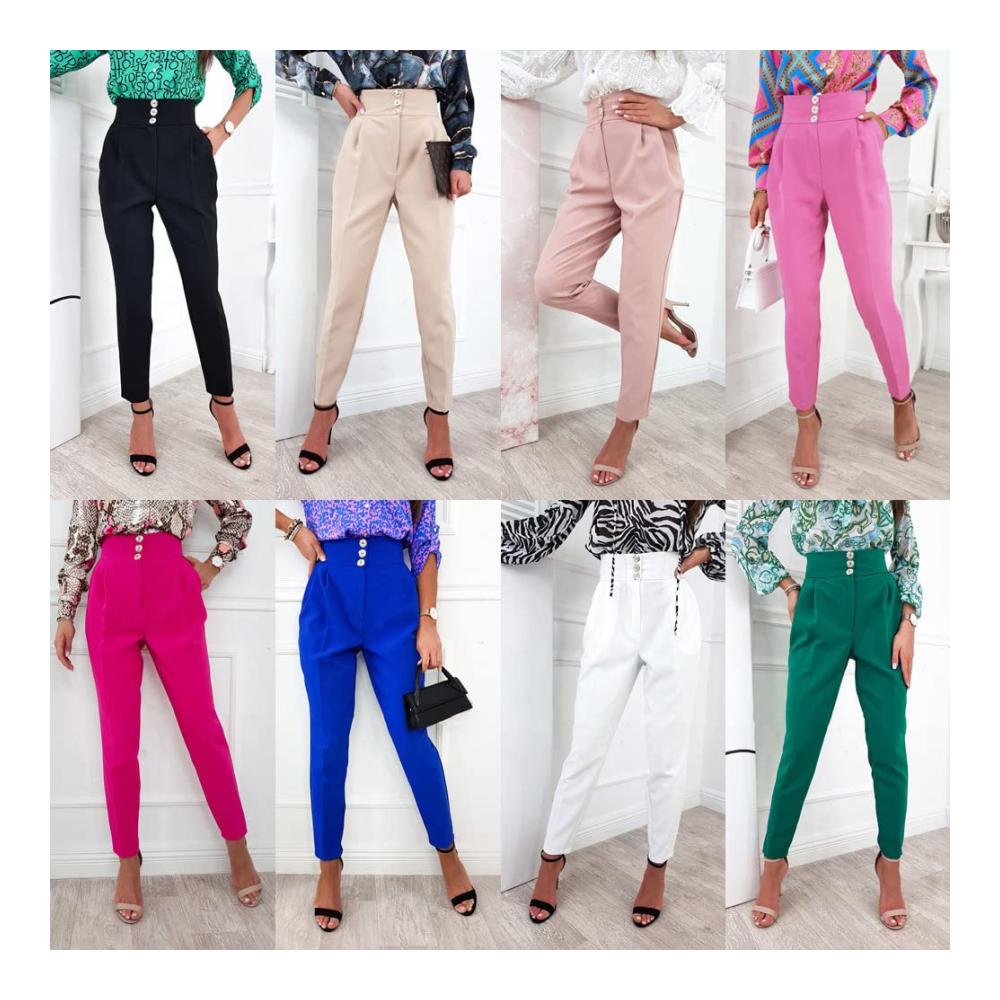 Diese elegante Sommerhose für Damen verfügt über eine hohe Taille und einen schlanken Schnitt, der Ihre Figur betont. Sie ist perfekt für lässige Anlässe und bietet hohen Tragekomfort. Die einfarbige Hose ist mit dekorativen Knöpfen verziert und verleiht Ihrem Outfit eine stilvolle Note. Diese gerade geschnittene Freizeithose ist vielseitig kombinierbar und ein Must-have für jeden Kleiderschrank. Holen Sie sich diese trendige Hose und seien Sie bereit für den Sommer
