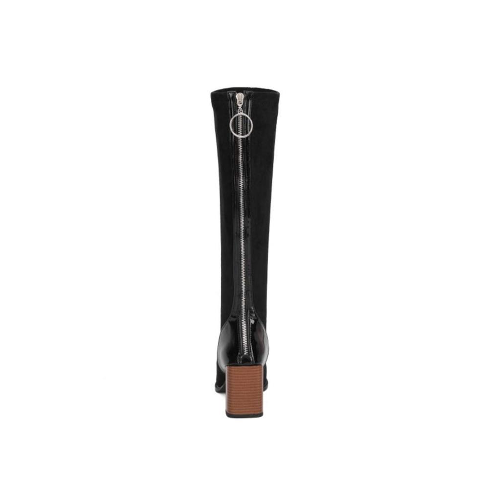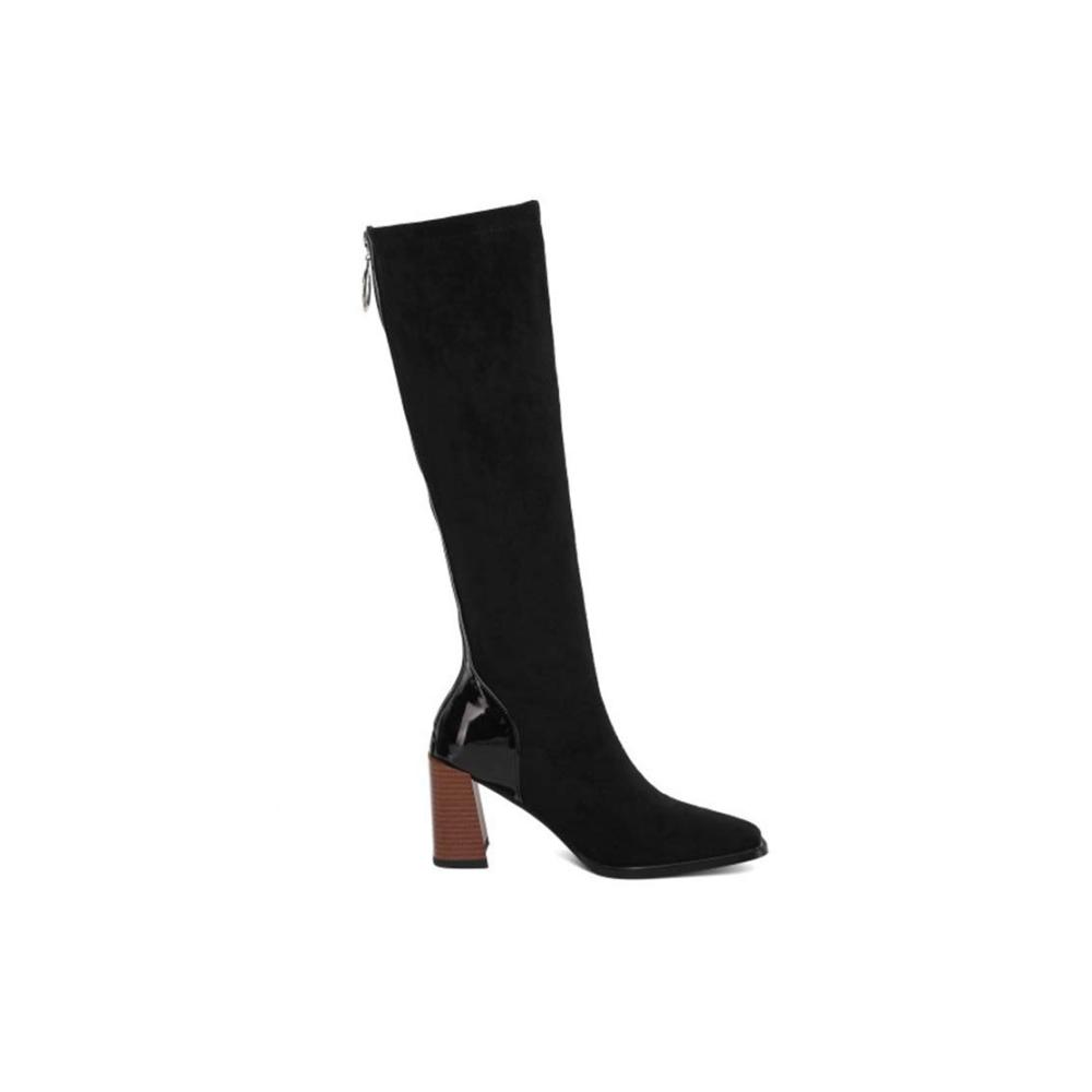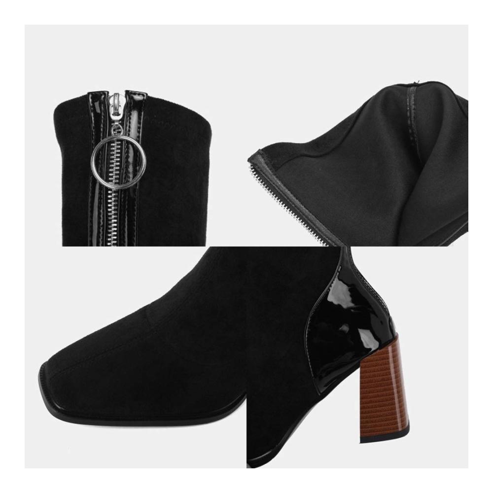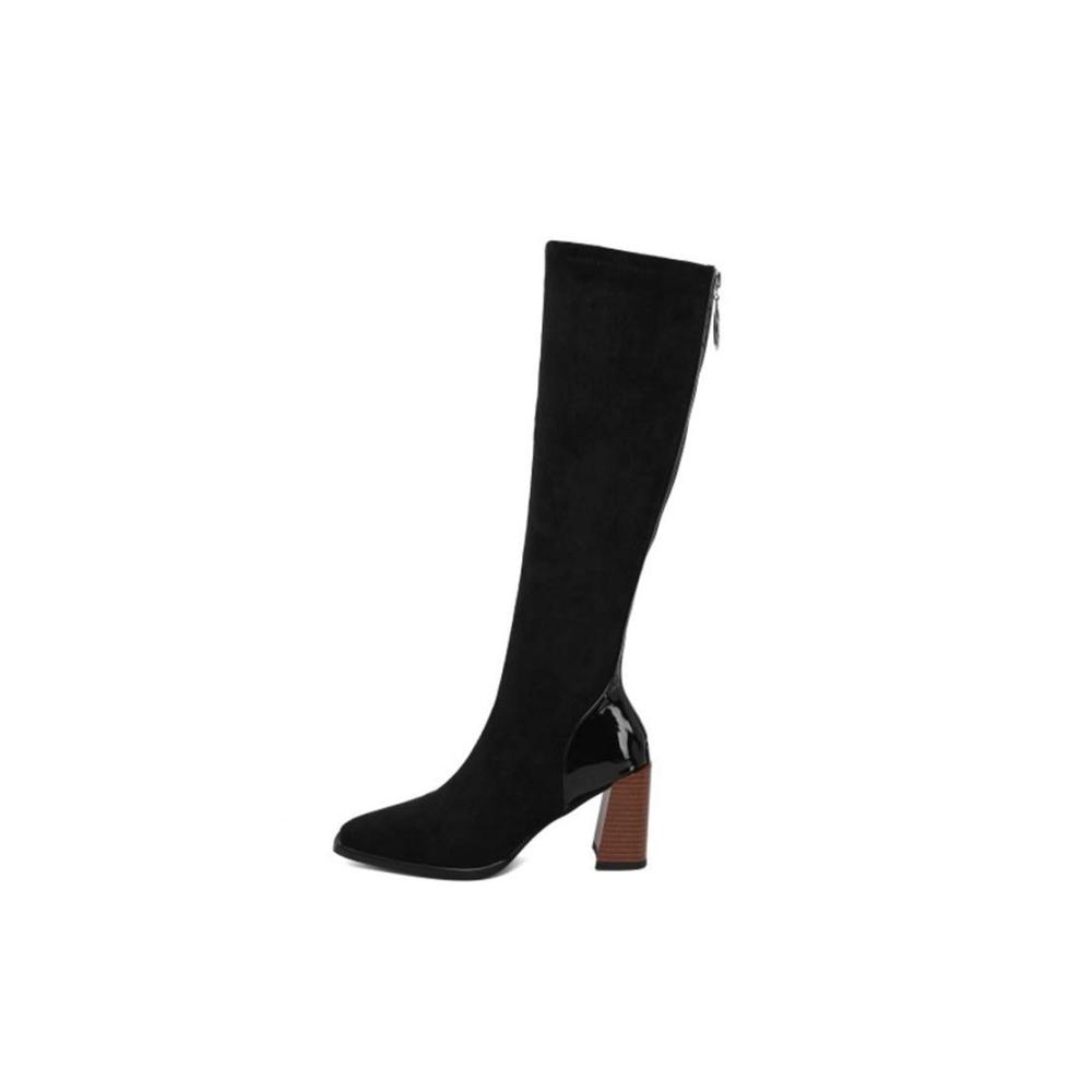 ❤ Personalisierte Nähte: Dieser Stretchstiefel hat ein personalisiertes Nähdesign. Die Ferse und der Reißverschluss sind mit Lackleder bezogen. Der obere und der Stiefelschaft sind aus Wildleder. Die beiden Materialien sind zusammengenäht, was modisch und schön ist.