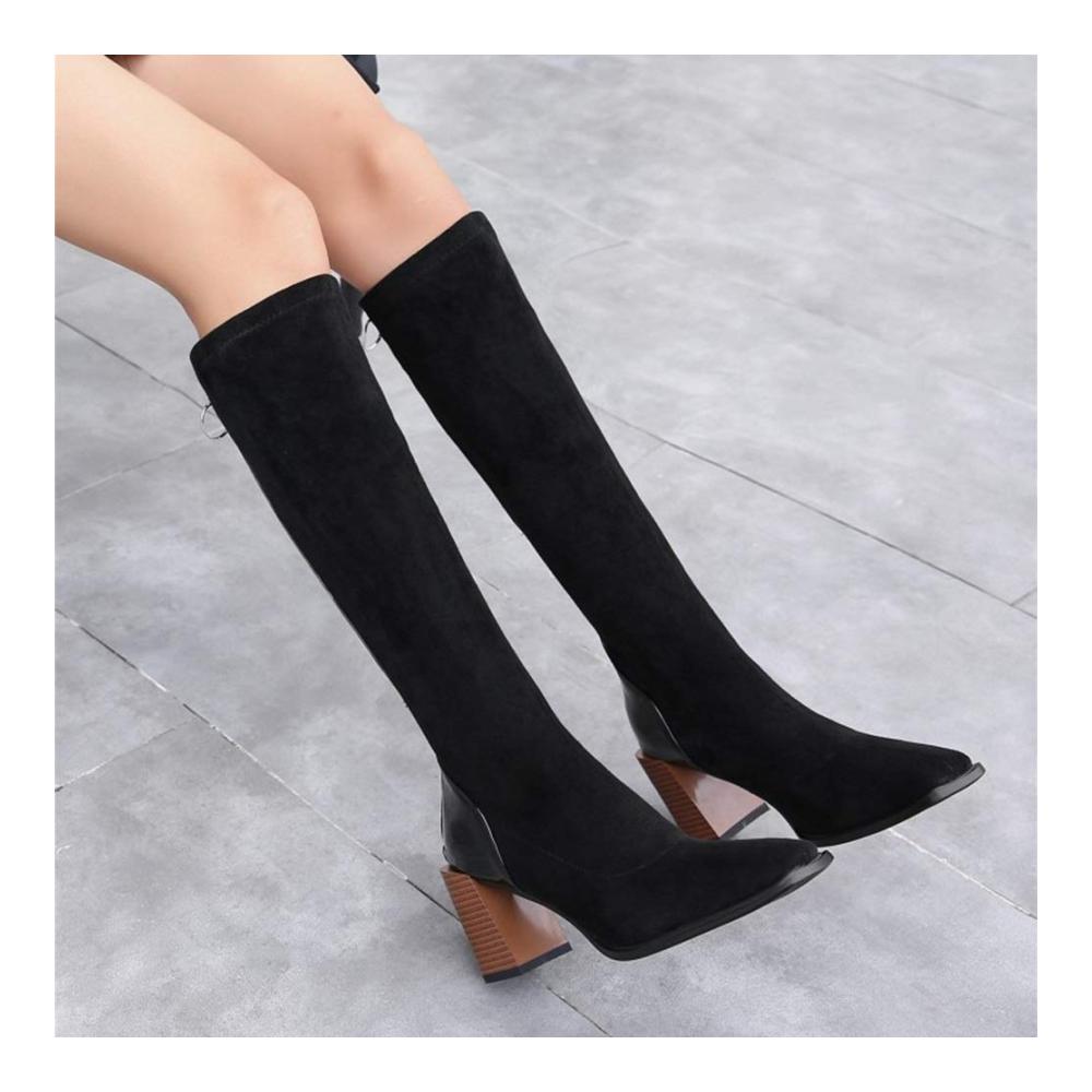 ❤ Quadratischer Zeh und dicker High Heel: Knielange Stiefel haben einen sexy und modischen Square Toe und ein 7,5 cm dickes High Heel-Design, das stabiler und bequemer ist. Gleichzeitig kann es die Körperproportionen verlängern und die Beine schlanker und charmanter machen.