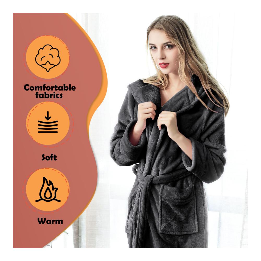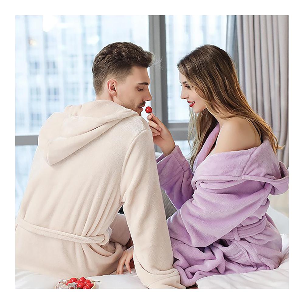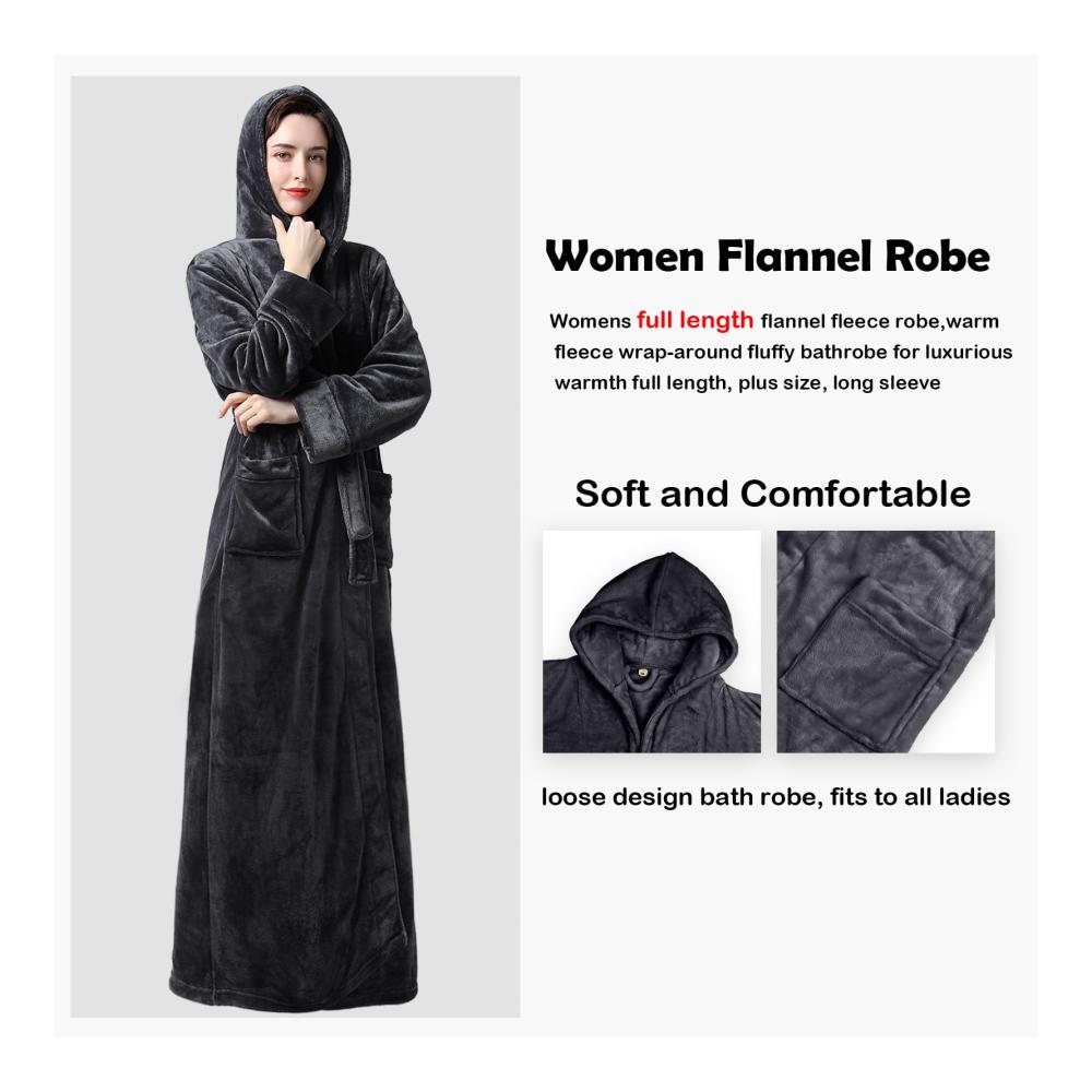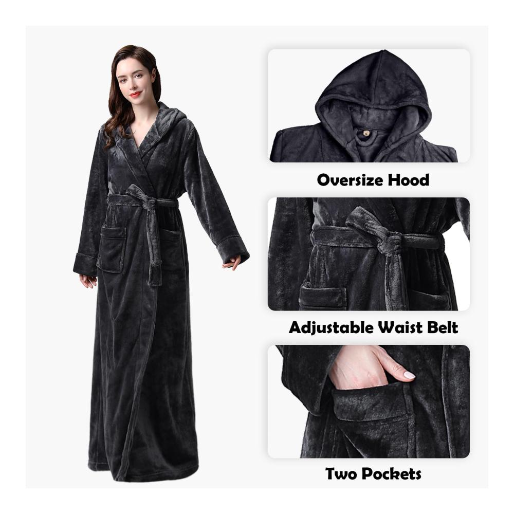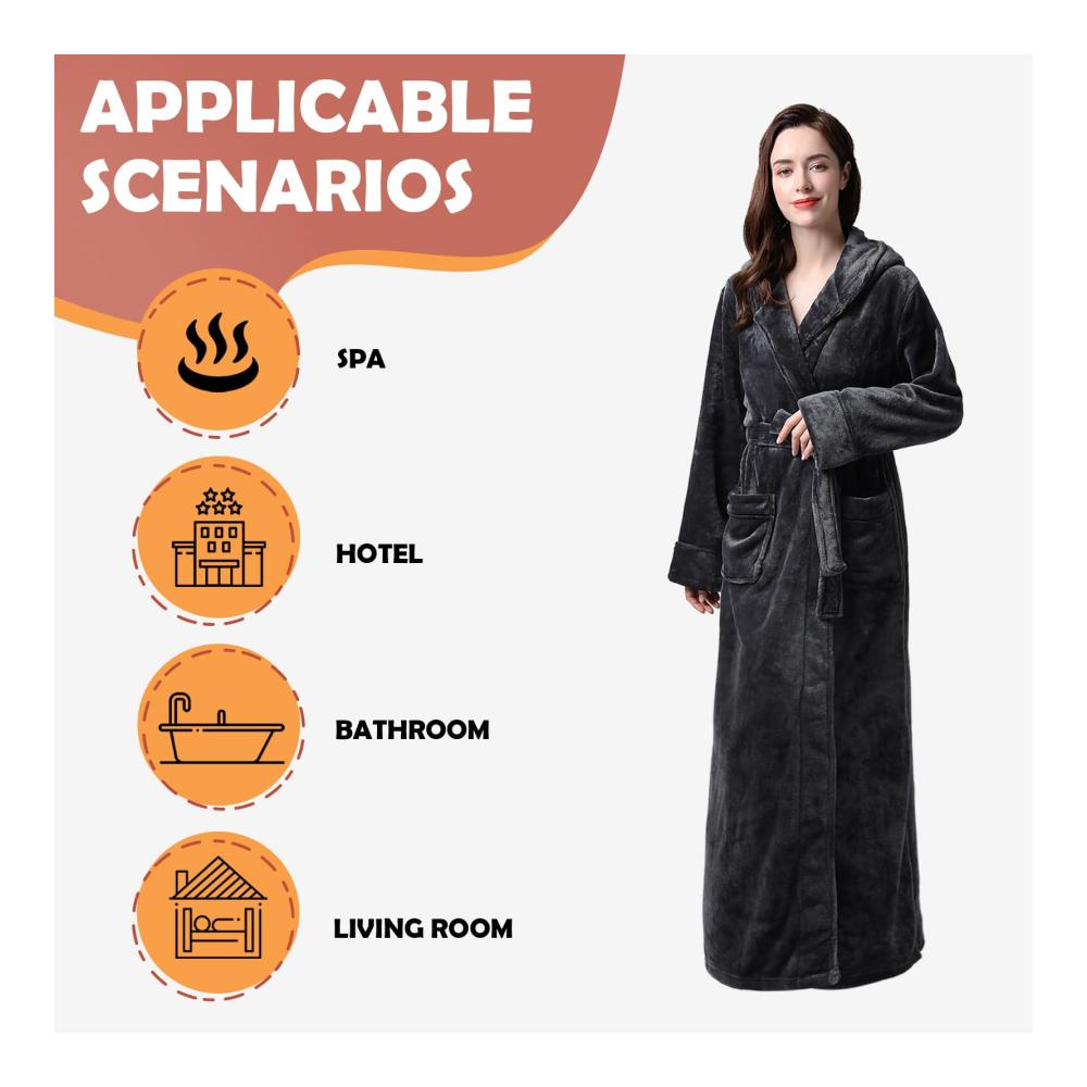 Dieser luxuriöse, bodenlange Bademantel aus Flanell bietet ultimativen Komfort und Wärme. Die flauschig weiche Textur des Plüschmaterials verwöhnt Ihre Haut, während die Kapuze Ihren Kopf kuschelig warm hält. Genießen Sie die gemütliche Wärme dieses Wintermantels an kalten Nächten oder nach einem entspannenden Bad.