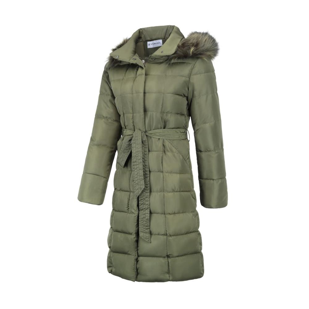 Halten Sie sich warm bei kühlem Wetter im Freien, diese stilvolle Frauen langen Mantel hat eine große Pelzkapuze, lange Design, Reißverschluss, mit Bund.