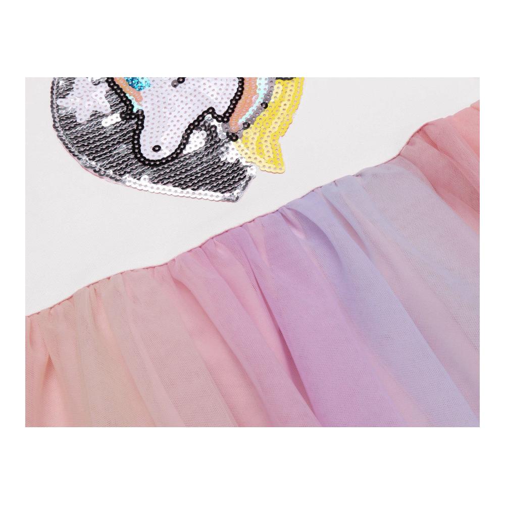 ❤【Süßes Design】: Das Oberteil dieses Mädchenkleides hat ein Einhornmuster aus speziellen Pailletten. Die untere Hälfte des Kleides ist ein regenbogenfarbener oder einfarbiger Netzrock, der ein Prinzessinnenkleid ist, das bei kleinen Mädchen beliebt wäre.