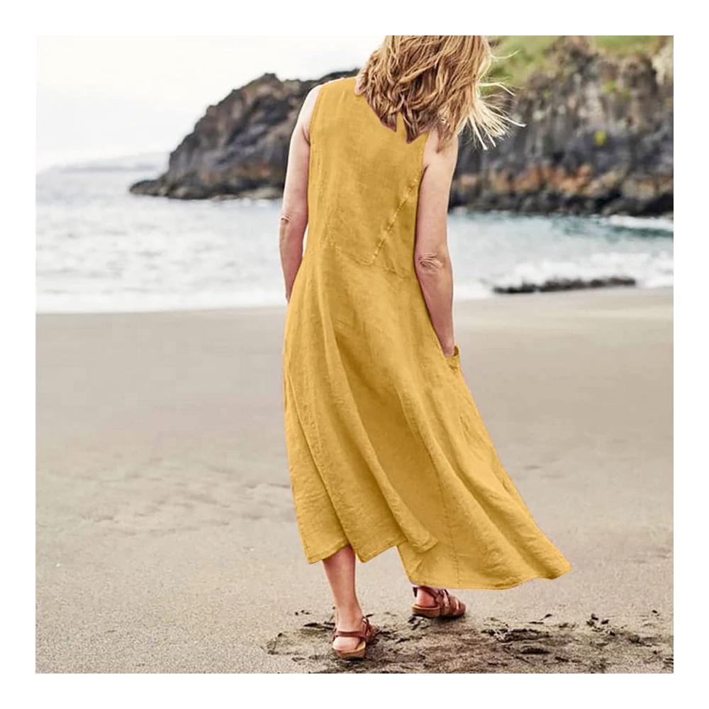 Entdecken Sie unsere neuen Damen Leinenkleider, perfekt für den Sommer! Diese Maxikleider aus Leinen sind elegant und luftig und bieten sowohl Komfort als auch Stil. Mit ihrem ärmellosen Design sind sie ideal für warme Tage. Die einfache einfarbige Gestaltung verleiht ihnen einen schicken Klassiker Look. Diese baggy Kleider in Lang sind leicht und perfekt für den Strand oder lässige Anlässe. Gönnen Sie sich ein elegantes und leichtes Sommerkleid, das Sie bequem und stilvoll durch die heißen Tage begleitet.