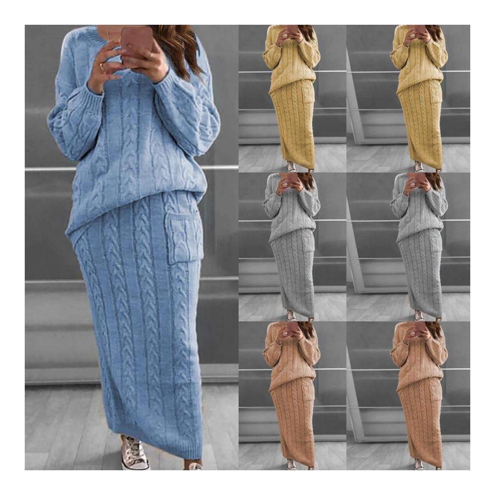 Dieses zweiteilige Set besteht aus einem Damenpullover mit Rollkragen und einem Midi-Strickrock, perfekt für den Winter. Das Oberteil ist ein figurbetonter Pullover mit Rollkragen, während der Rock eine Maxilänge hat. Hergestellt aus weichem Strickmaterial, bietet dieses Set Komfort und Stil für jeden Anlass. Ideal für Frauen, die einen trendigen Look suchen, ist dieses Set sowohl als Pulloverkleid als auch als Maxikleid vielseitig einsetzbar. Machen Sie eine Aussage mit diesem eleganten Strickkleid-Set für Damen.