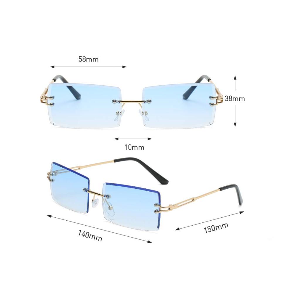 Diese Sonnenbrillen im Retro-Stil zeichnen sich durch eckige rahmenlose Gläser und einen vintage-inspirierten Look aus. Das 2er-Set enthält zwei Modelle: eines in Blau und das andere in Teegrün.